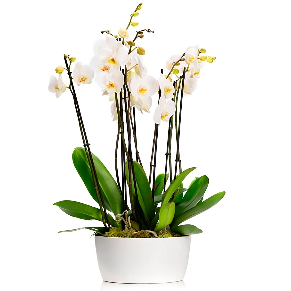 Орхидея в горшке «Белая» с доставкой по г Красноармейск (Саратовская обл): вы можете заказать подарок в интернет магазине «Флормания» по цене за 5890 руб.