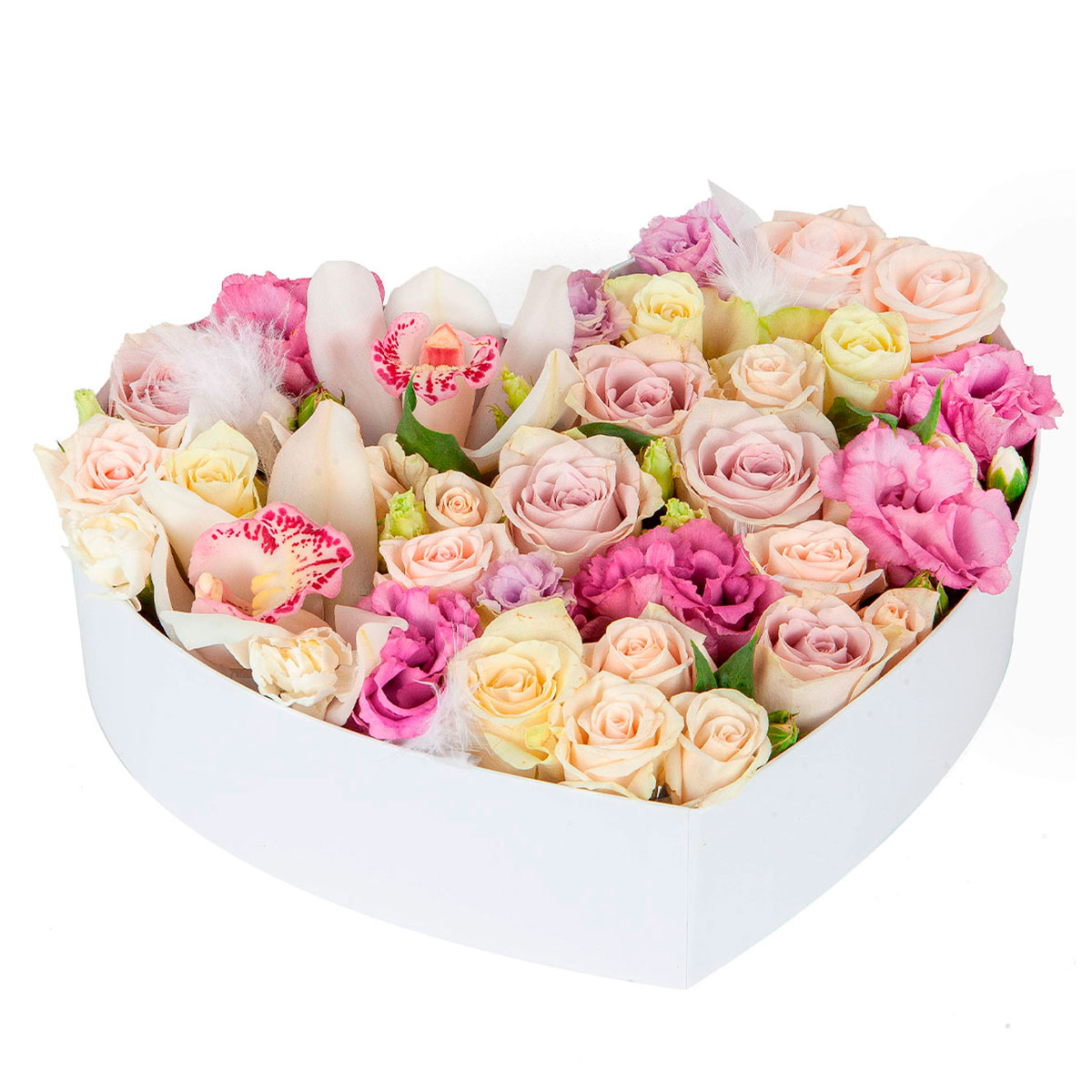 Цветы в коробке «Нежный флер» с доставкой по г Красноармейск (Саратовская обл): вы можете заказать букет в салоне цветов «Флормания» по цене от 3190 руб.