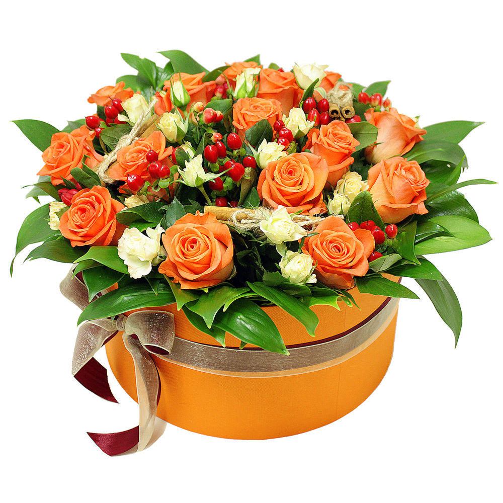 Цветы в коробке «Оранжевый закат» с доставкой по г Красноармейск (Саратовская обл): вы можете заказать букет в интернет-салоне цветов «Флормания» по цене от 3190 руб.