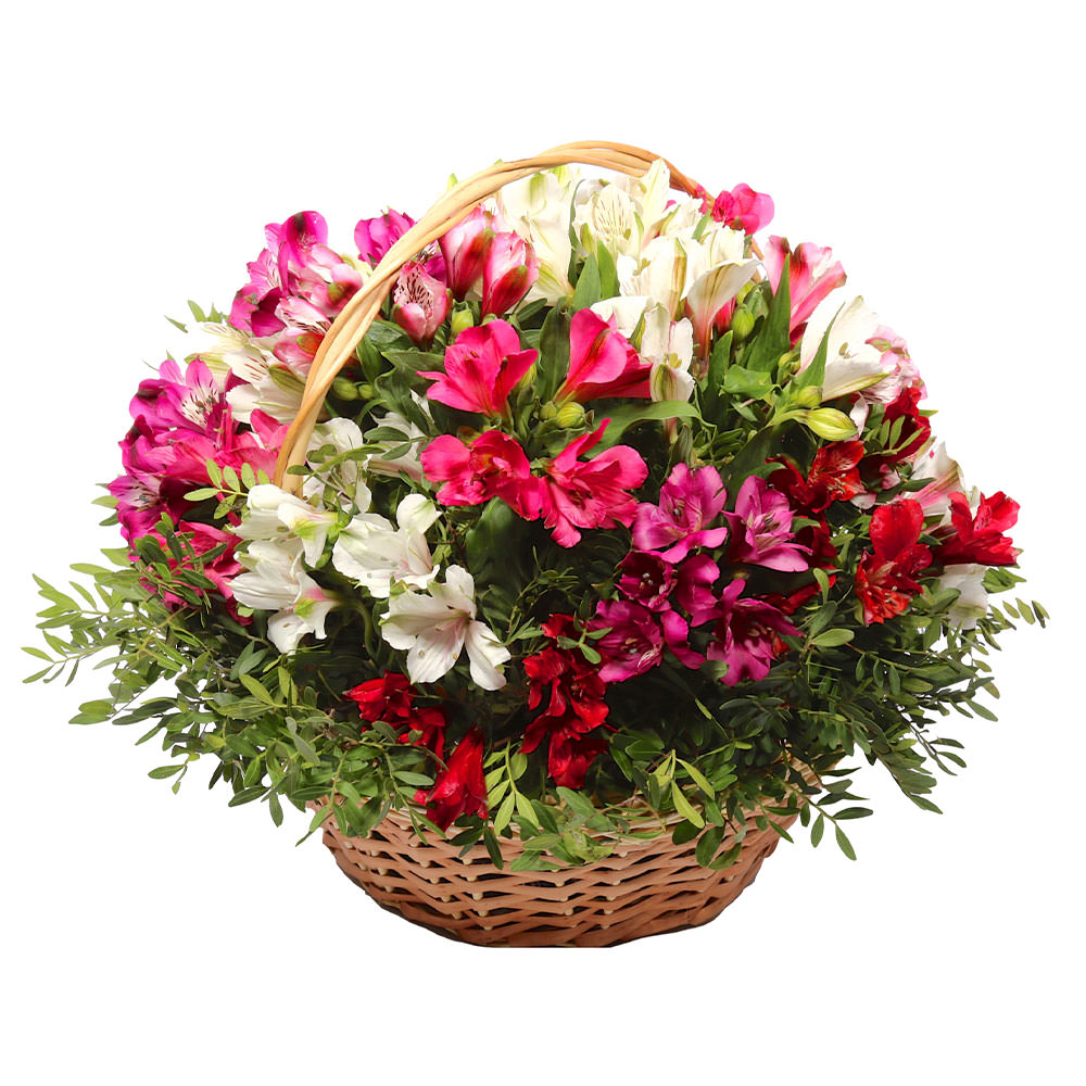Цветы в корзинке «Краски альстромерий» с доставкой по г Красноармейск (Саратовская обл): вы можете купить букет в цветочном супермаркете «Флормания» по цене от 3490 руб.