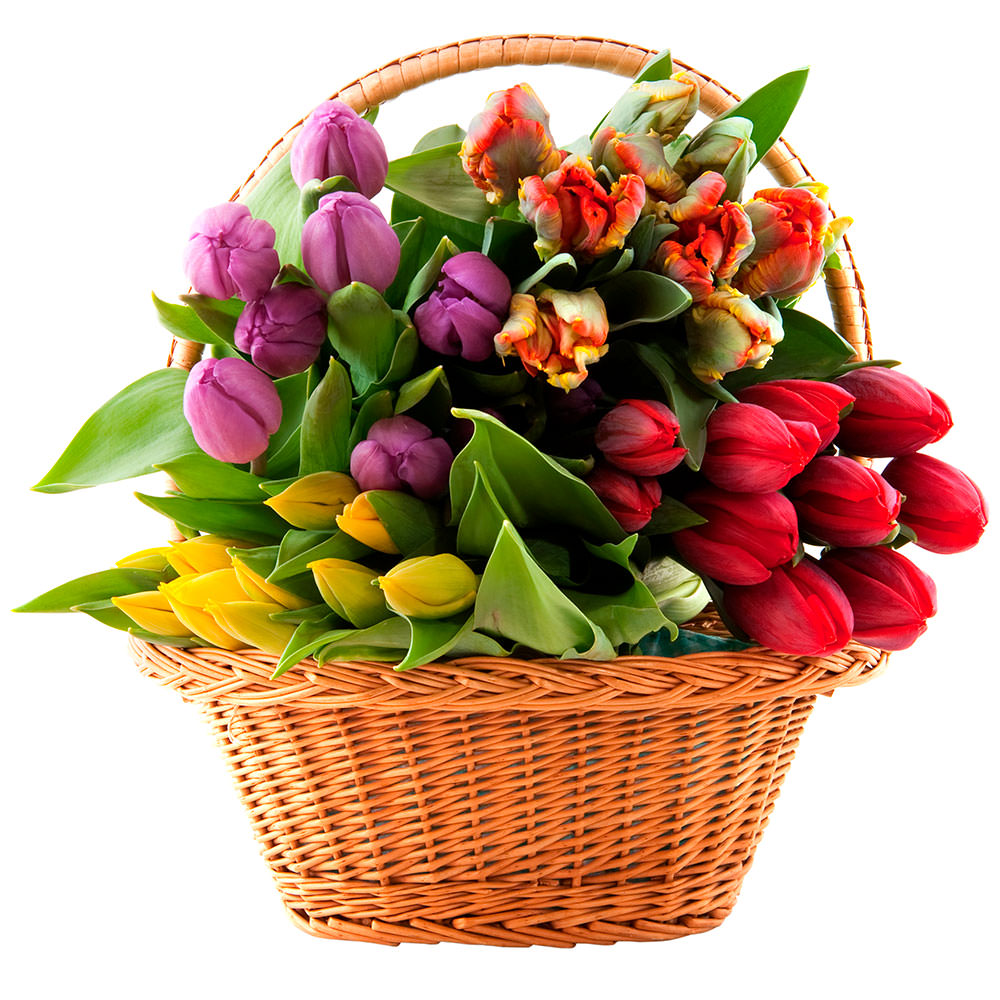 Цветы в корзинке «Микс тюльпанов» с доставкой по г Красноармейск (Саратовская обл): вы можете заказать букет в цветочном гипермаркете «Флормания» по цене от 3490 руб.