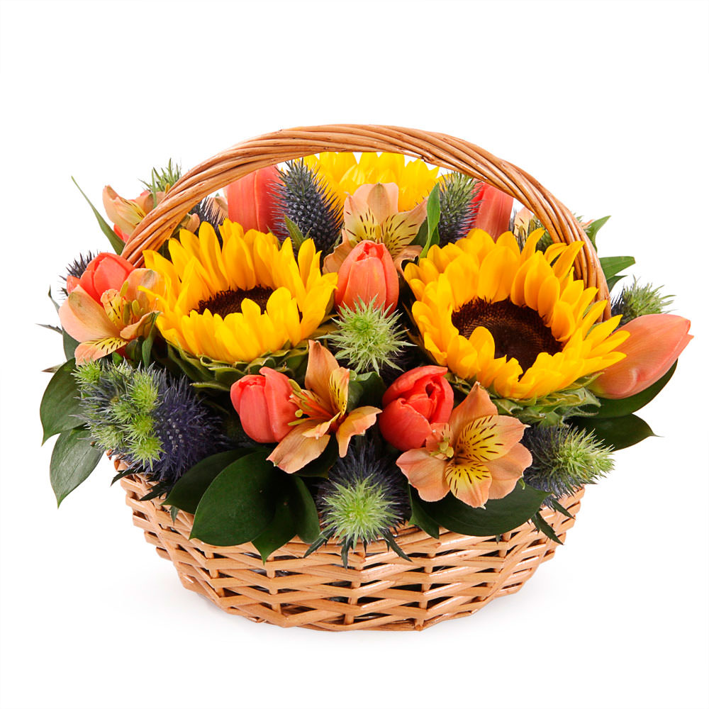 Цветы в корзинке «Солнечный день» с доставкой по г Красноармейск (Саратовская обл): вы можете заказать букет в цветочном интернет-магазине «Флормания» по цене от 3490 руб.